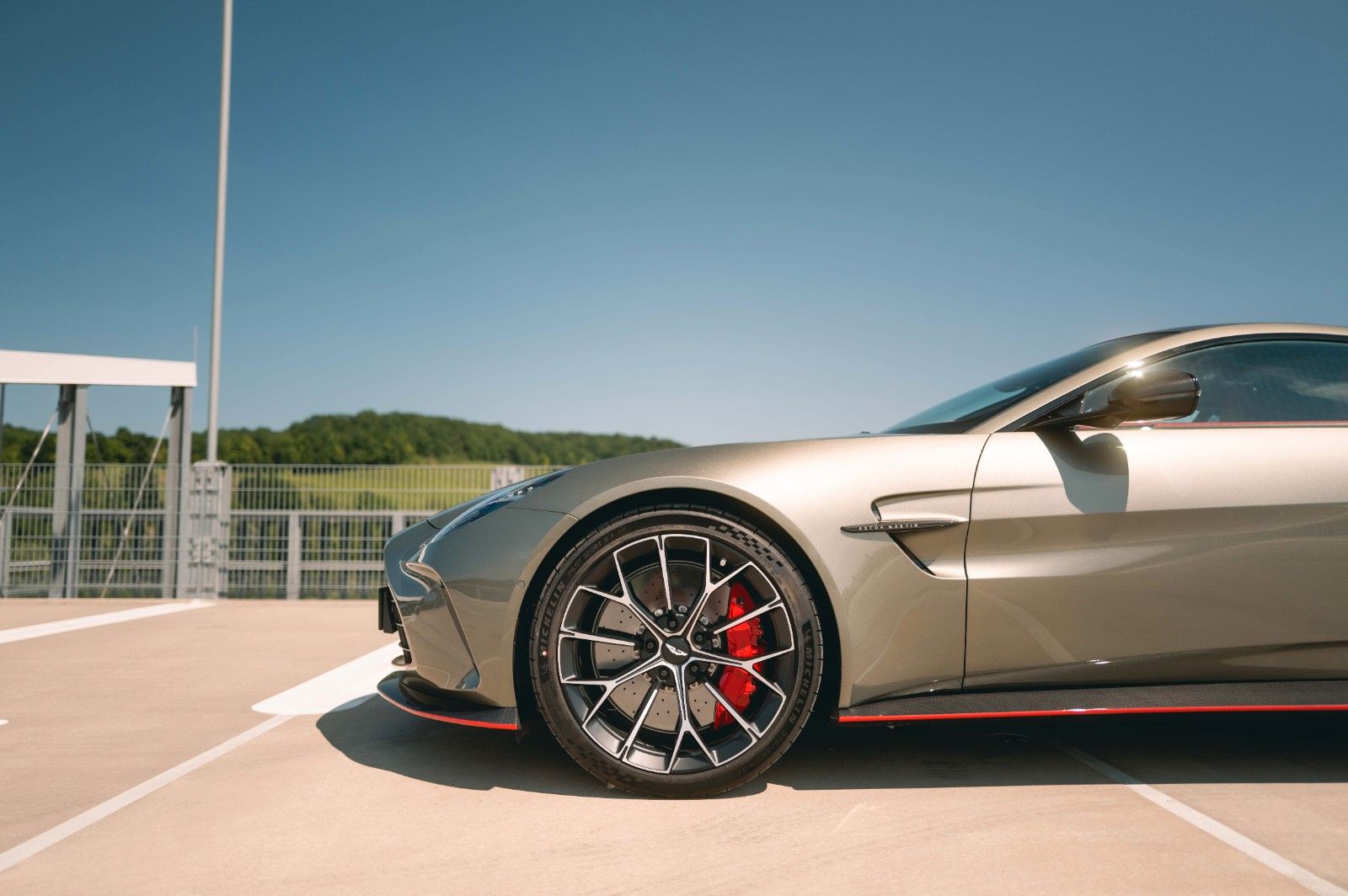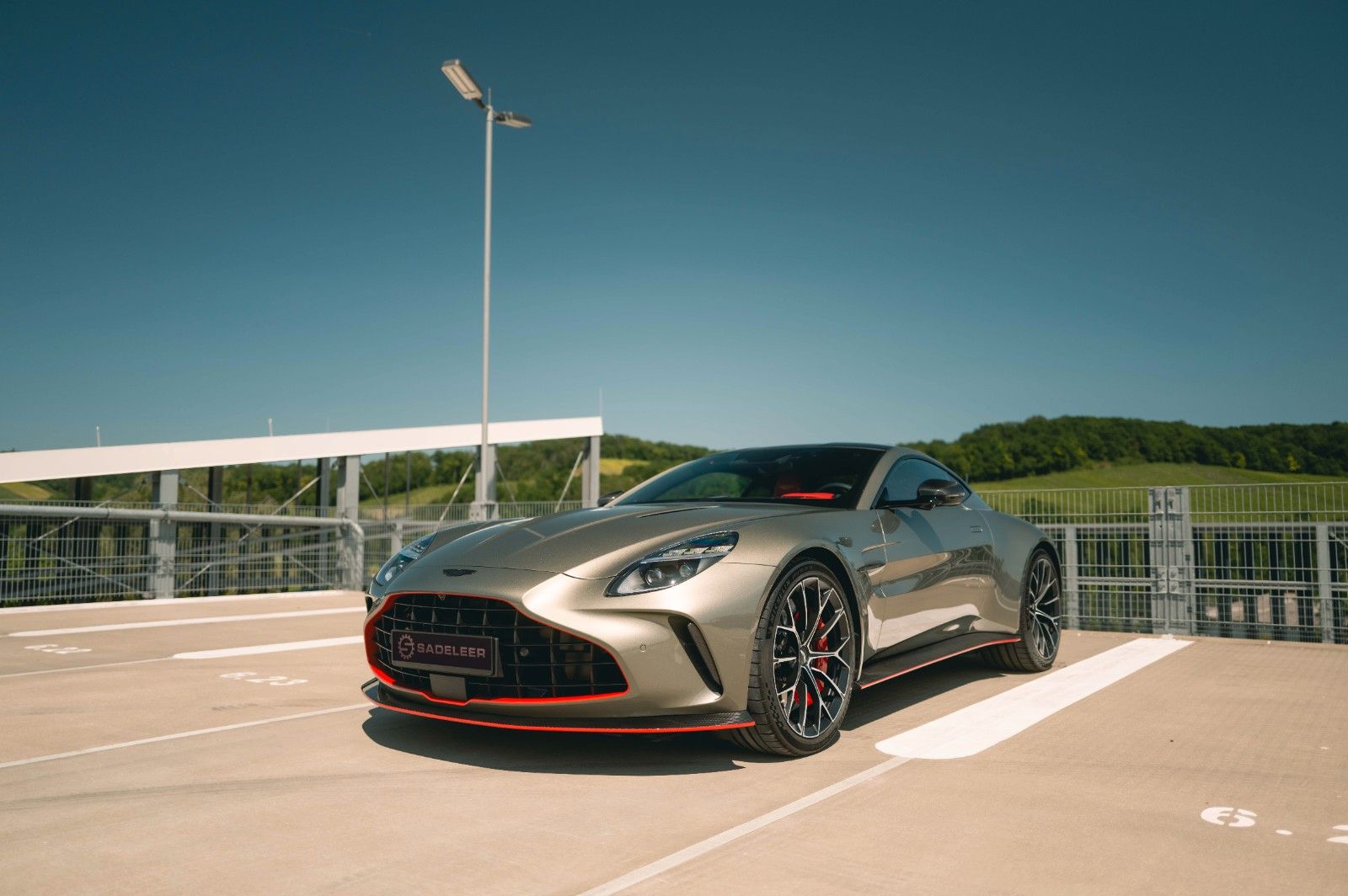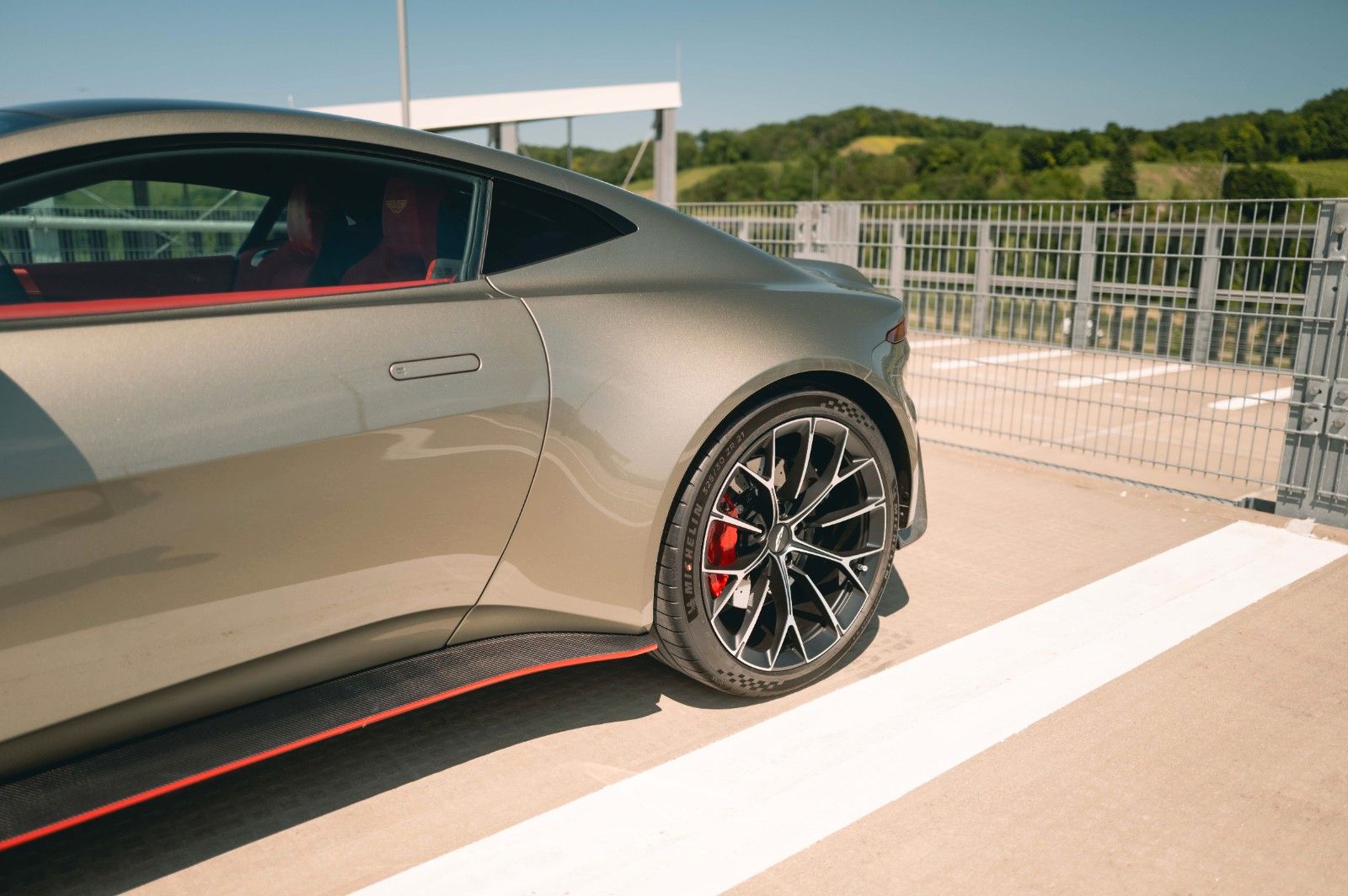 This 2025 Aston Martin Vantage Coupe is a striking, high-performance GT finished in Titanium Grey over a dynamic Spicy Red and Black interior. Delivered new with only 45 km on the odometer, this Vantage is extensively optioned with both performance and luxury enhancements, including a full carbon exterior package, carbon roof panel, and red carbon-ceramic brakes. Inside, contemporary Alcantara, contrast Electron Yellow stitching, and a Bowers & Wilkins audio system elevate the driving experience. With carbon trim throughout and 21" Y-Spoke Satin Black forged wheels, this example balances motorsport pedigree with bespoke craftsmanship for the discerning driver.