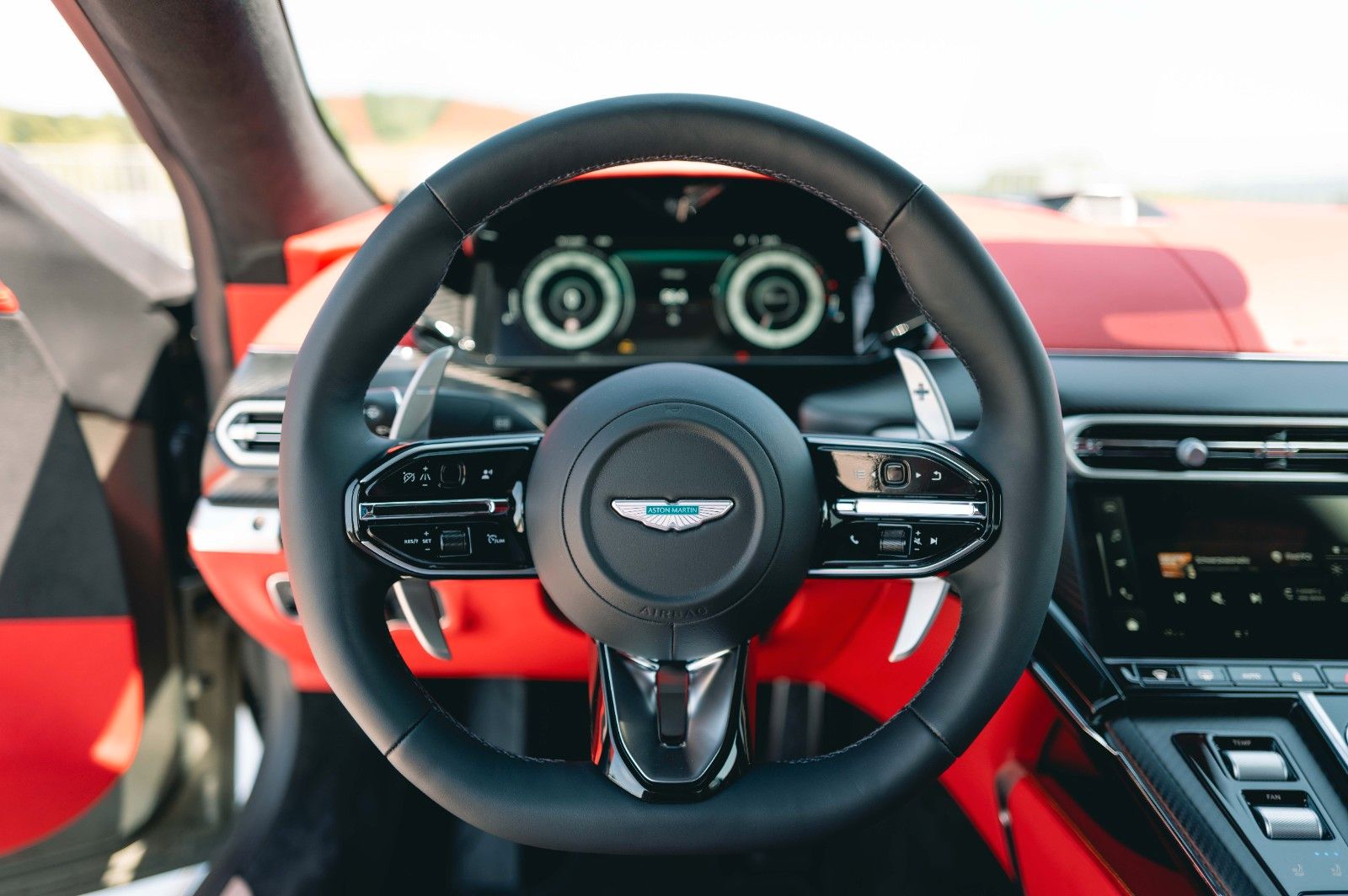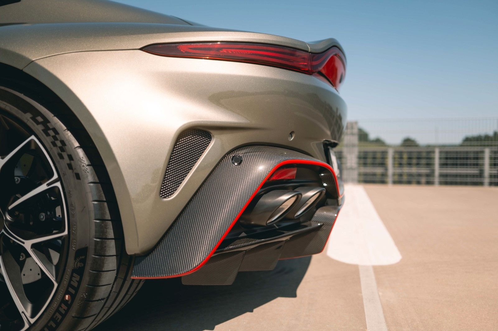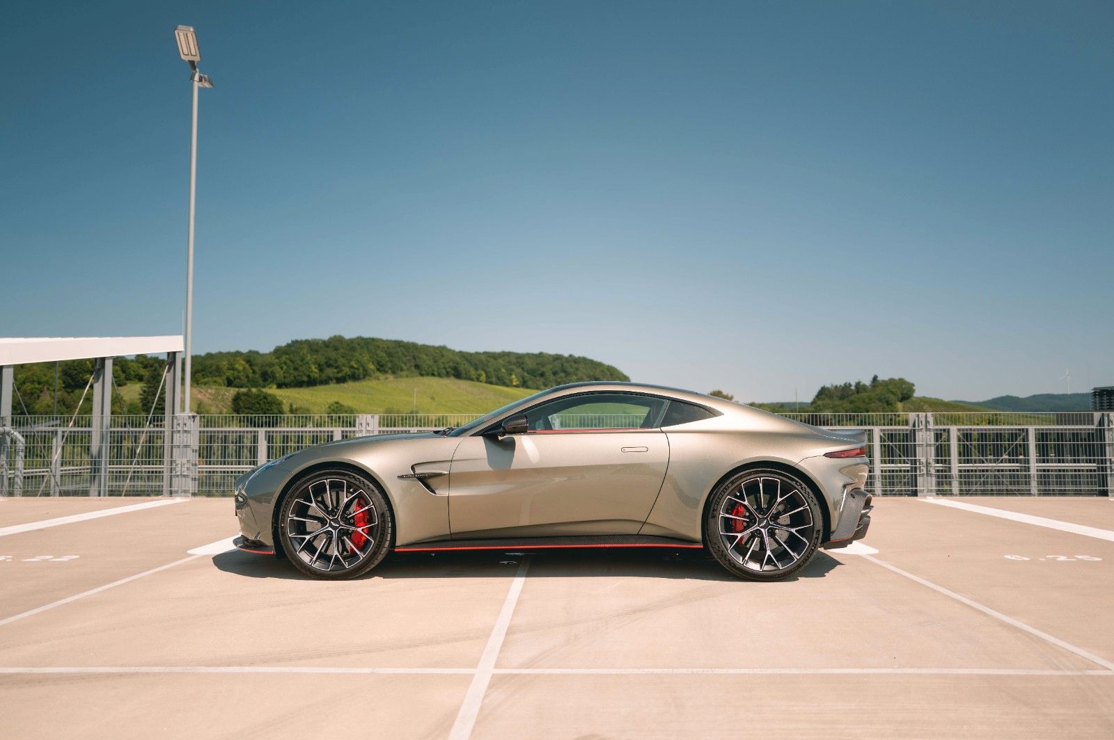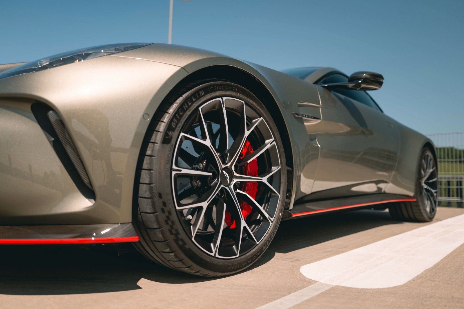 This 2025 Aston Martin Vantage Coupe is a striking, high-performance GT finished in Titanium Grey over a dynamic Spicy Red and Black interior. Delivered new with only 45 km on the odometer, this Vantage is extensively optioned with both performance and luxury enhancements, including a full carbon exterior package, carbon roof panel, and red carbon-ceramic brakes. Inside, contemporary Alcantara, contrast Electron Yellow stitching, and a Bowers & Wilkins audio system elevate the driving experience. With carbon trim throughout and 21" Y-Spoke Satin Black forged wheels, this example balances motorsport pedigree with bespoke craftsmanship for the discerning driver.