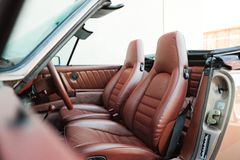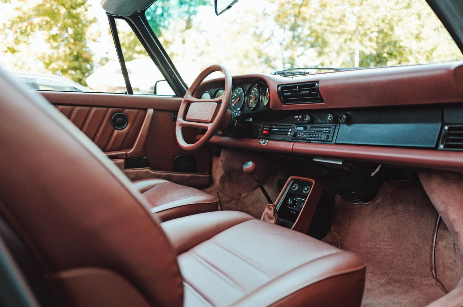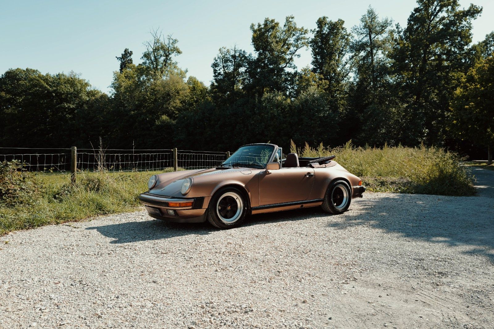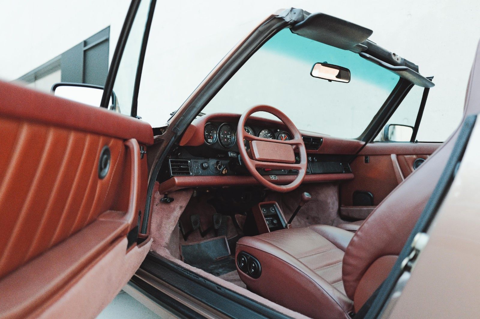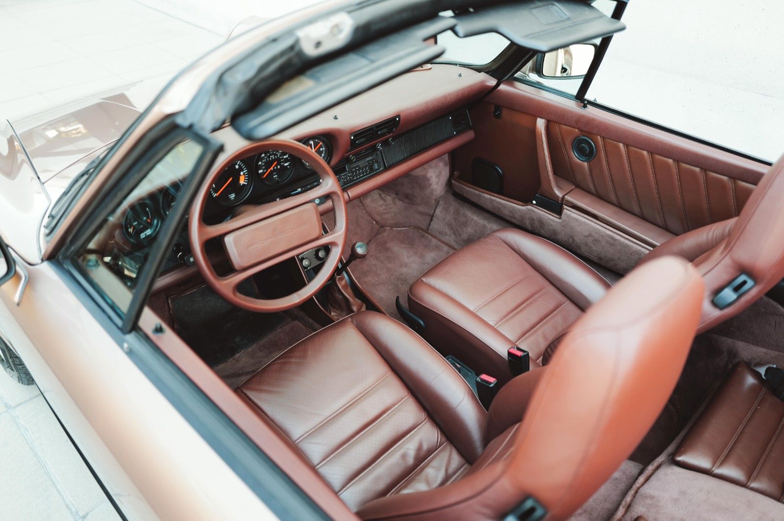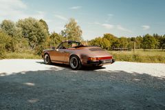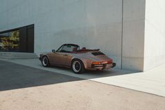 This original 1987 Porsche 911 Carrera 3.2 Cabriolet is presented in excellent, well-documented condition. Delivered new in California, the car has had just three owners since new. Finished in the rare and elegant factory shade of Nougatbraun Metallic with a Brown leather interior and a black convertible top, it retains a highly desirable and authentic color combination. The car has benefitted from consistent maintenance and several important refurbishments: the engine was refurbished in 2016, in 2023 the oil lines were replaced, the convertible roof renewed, and the seats reupholstered, while in 2024 a new windshield, new wheels and tires, and a complete service with oil change were carried out.