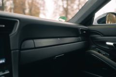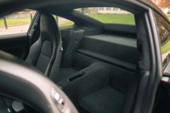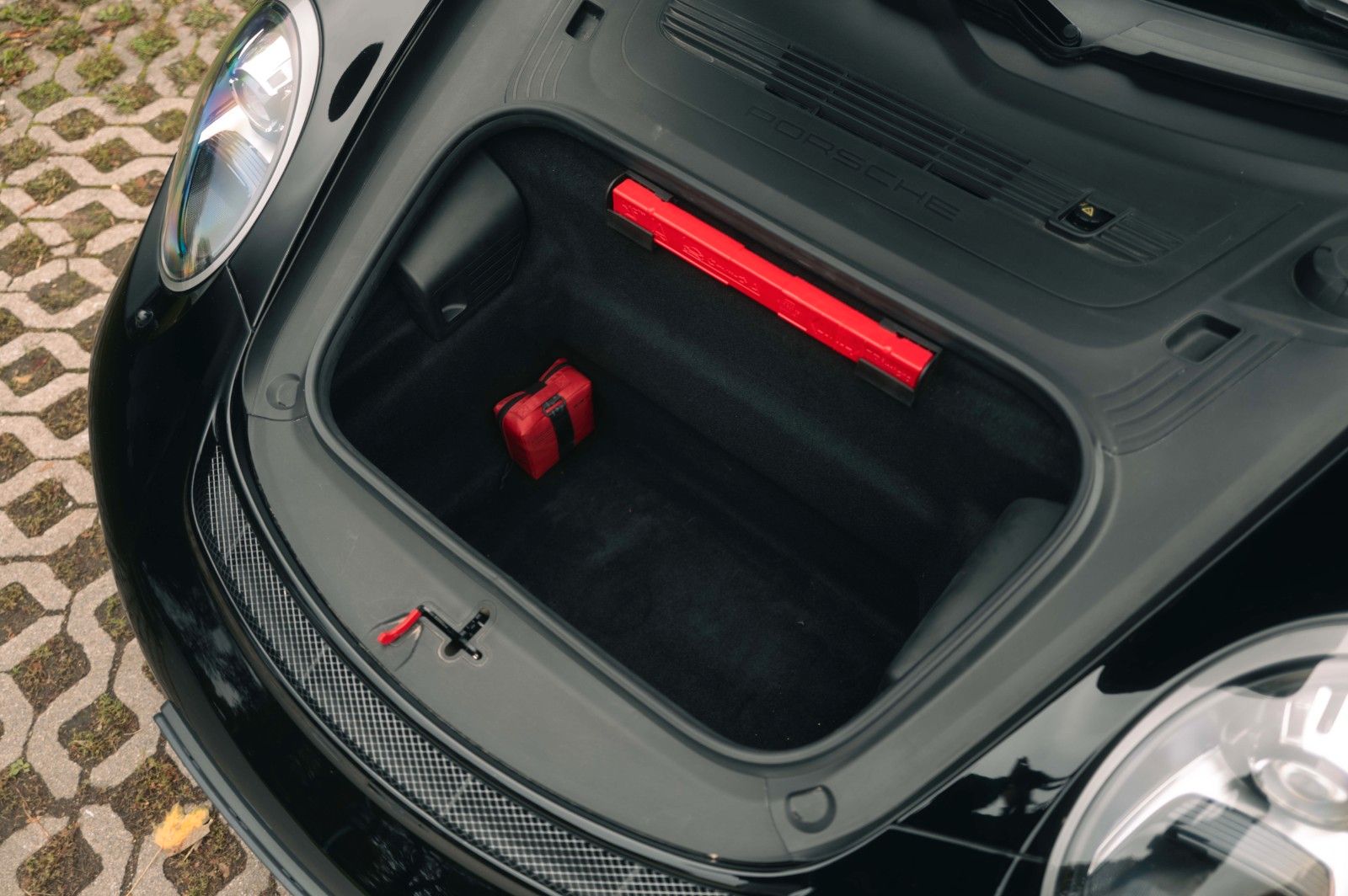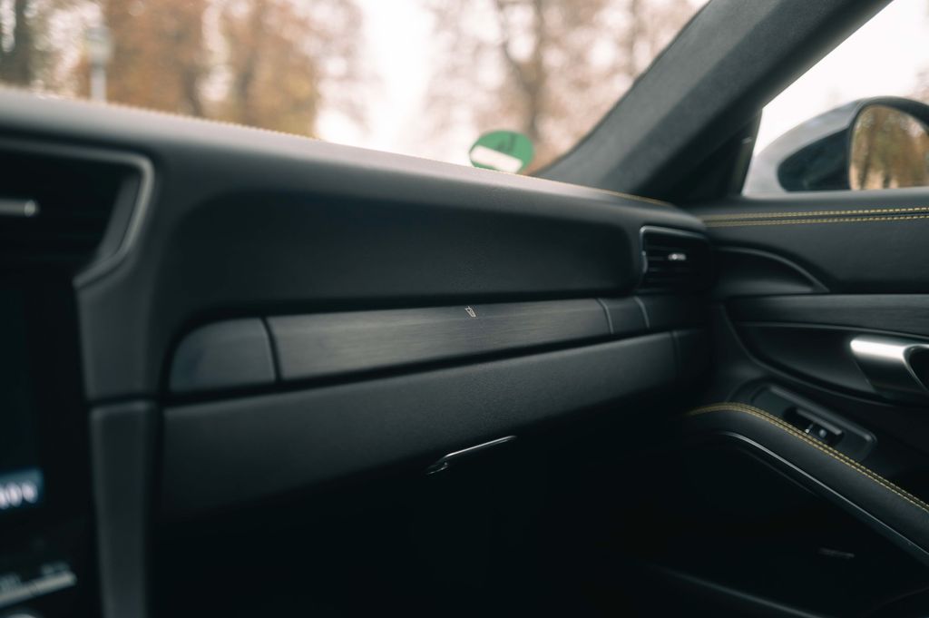 Innenausstattung in Leder/Alcantara Schwarz, mit 18-Wege Sportsitzen Plus, Bose Soundsystem, Dekorleisten in gebürstetem Aluminium Schwarz und Porsche-Wappen in den Kopfstützen.