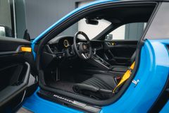 Finished in Shark Blue (PTS) with exposed gloss carbon elements and bespoke yellow accent detailing, this Marsien features both off-road and on-road forged center-lock wheel sets, full aluminum underbody protection, and a handcrafted interior trimmed in leather, carbon fiber, and yellow accents, complete with club sport roll bar and 6-point harnesses.